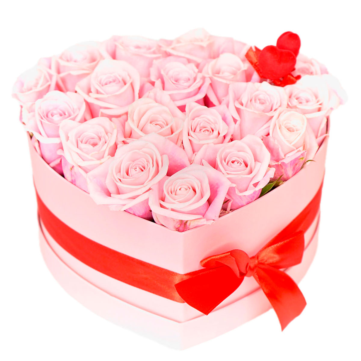 Розовые одноголовые розы создают атмосферу нежности и романтики. Упакованы в шляпную коробку в форме сердца, украшенную красной атласной лентой. Альтернативное оформление возможно в бархатной или дизайнерской коробке. Прекрасный подарок для любимой на 14 февраля или годовщину.